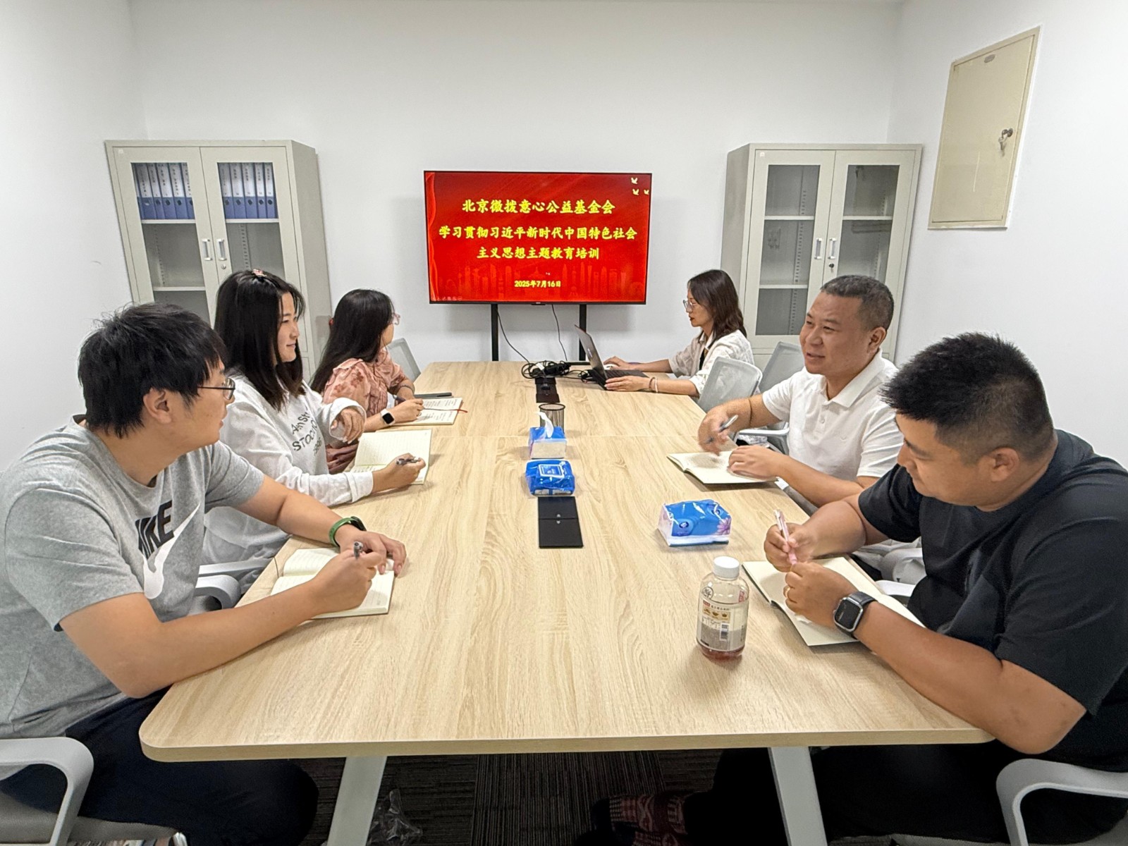 7月16日,北京微拨意心公益基金会组织党员、入党积极分子和其他工作人员展开了学习贯彻习近平新时代中国特色社会主义思想主题教育培训。