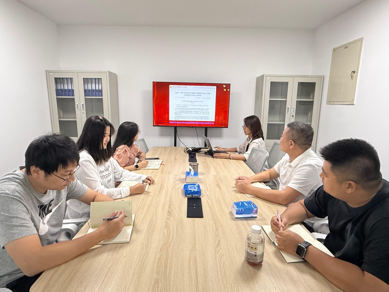 基金会秘书长带领大家学习习近平新时代中国特色社会主义思想主题教育工作会议上的讲话,深入学习“四个意识、四个自信、两个维护”,引导基金会全员从思想上正本清源、固本培元,不断提高政治判断力、政治领悟力、政治执行力。增强“四个意识”、坚定“四个自信”、做到“两个维护”,始终在思想上政治上行动上同党中央保持高度一致,坚决维护党中央权威和集中统一领导。